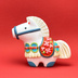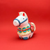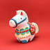 2026年干支の午をテーマに、石粉粘土と胡粉顔彩を使用して制作しました。 古くから白は、純真無垢で神聖な色とされ、白い動物は神の化身や使いとして神聖視されていました。 白い馬は古くから人と神様を繋ぎ、特に日本では無病息災や邪気払いの象徴とされ、大変縁起が良いとされています。 本作は、神聖な白い馬をモチーフに、日本各地の馬の郷土玩具や土鈴、張り子などのデザインを基にし造形をし、模様はダーラナホースのデザインを意識して可愛らしく仕上げました。 TAGの造形作品らしい、ふっくらとした造形と愛嬌のある表情に癒される、そんな作品となっております。 ~素材の注意点~ ・素材に使用している石粉粘土と胡粉顔彩は古くから使用されている画材なので、長く持ち、変色しにくい素材とされています。 ・水濡れと落下による破損には弱いので、十分ご注意ください。